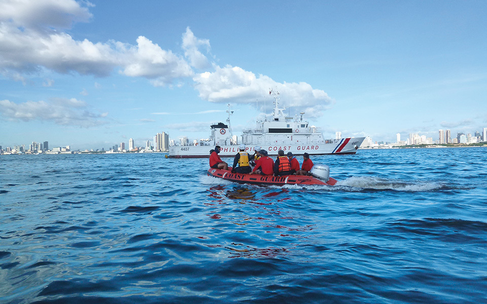Speedboat training for the Philippine Coast Guard in 2017 (the white hull was provided by Japan).