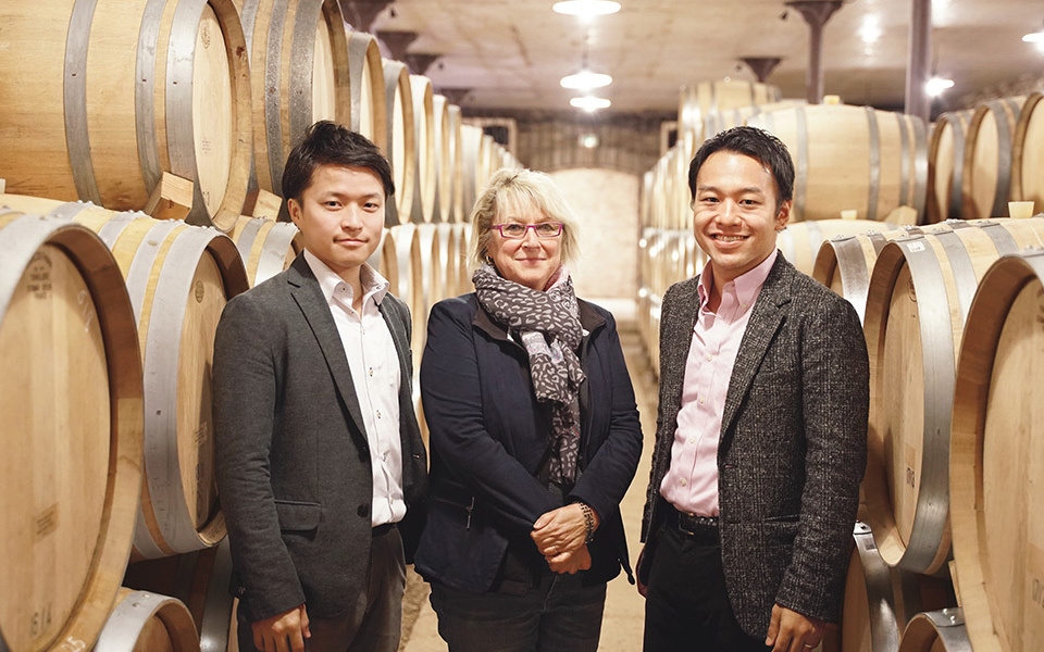 Imai (left), master brewer at Kura Grand Paris, and Inagawa (right), CEO of WAKAZE. Both received guidance on brewing techniques in France from Nadine (middle), an oenologist in Burgundy.