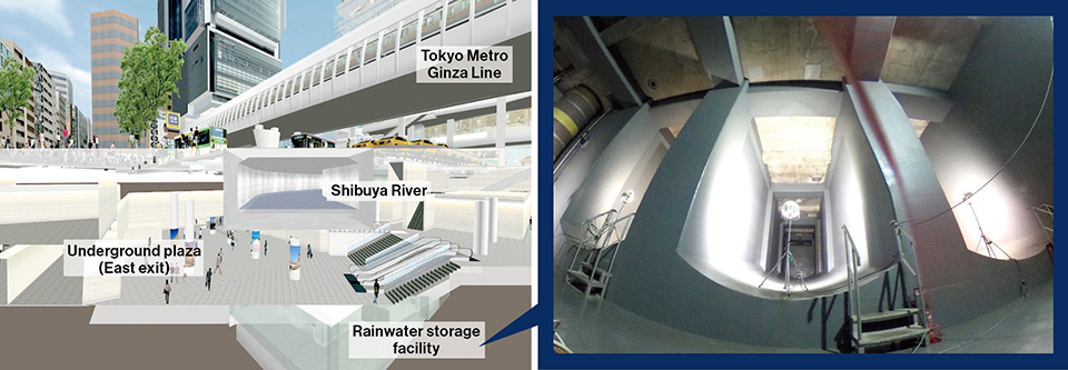 New rainwater retention facilities have been constructed below the Shibuya Station area’s underground commercial complexes.