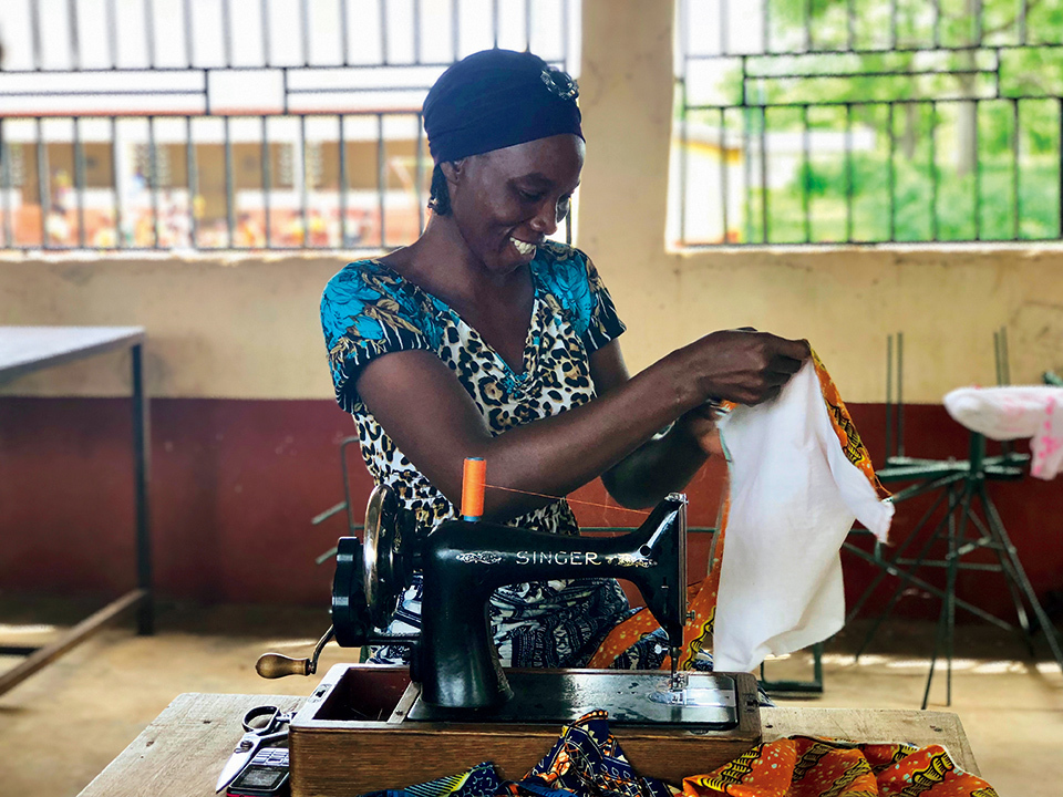 Women sewing at the MY DREAM Factory in Bognayili village. The women find various ways to recycle fabrics and save on sourcing materials.