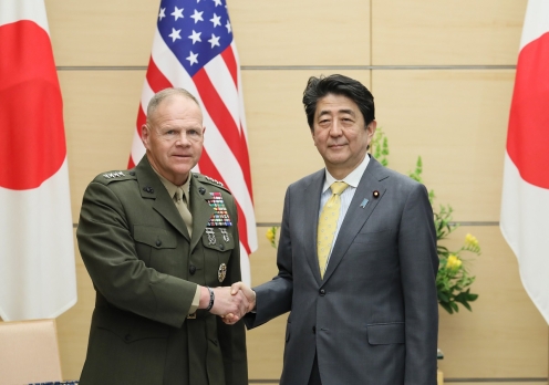 On March 26, 2019, Prime Minister Shinzo Abe received a courtesy call from General Robert B. Neller, Commandant of the United States Marine Corps, at the Prime Minister’s Office.