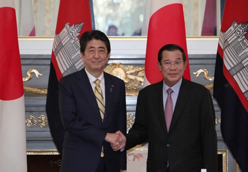 Prime Minister Shinzo Abe hosted a summit meeting and other events with Samdech Akka Moha Sena Padei Techo Hun Sen, Prime Minister of the Kingdom of Cambodia, at Akasaka Palace State Guest House.