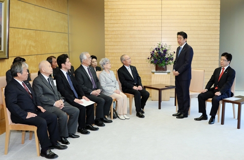 “The last time we met I promised that I would discuss the importance of the abduction issue at the General Assembly of the United Nations in my address at the General Debate, and that I would emphasize to the leaders of each country, including President Trump, just how important the abduction issue is, not only for Japan, but the entire world. Today, I would like to report on these promises. First, I would like to express my gratitude to all of you for taking the time out of your busy schedules to visit the Prime Minister’s Office.