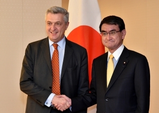 On November 17, commencing at 2:40 p.m. for approximately 20 minutes, Mr. Taro Kono, Minister for Foreign Affairs, received a courtesy call from Mr. Filippo Grandi, The United Nations High Commissioner for Refugees (UNHCR), during his visit to Japan. The overview of the courtesy call is as follows: