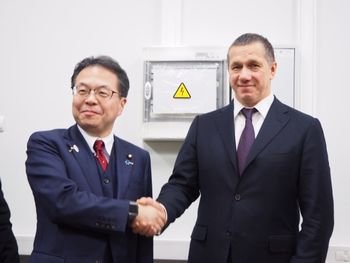 Following this, Minister Seko visited the facilities at which Japan-Russia Far East cooperative projects are advancing, such as Hokuto Rehabilitation Center, jointly established by Hokuto Hospital and JGC Corporation, under preparation for its inauguration in 2018, an exhibition of model homes promoting the sale of wooden houses in Russia, and an automobile assembly plant operated by Mazda Sollers Manufacturing Rus, and also toured other facilities related to a port harbor and a railway, which will be important infrastructures for Japanese companies in future business activities.