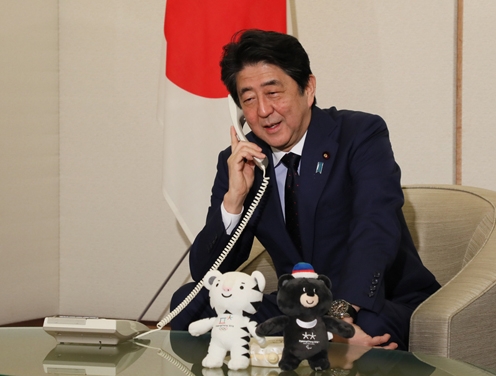 On February 17, 2018, Prime Minister Shinzo Abe made a congratulatory telephone call to figure skater Mr. Yuzuru Hanyu, who won the gold medal in men’s figure skating at the PyeongChang Olympic Games.