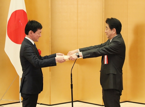 On February 26, 2018, Prime Minister Shinzo Abe attended the awards ceremony for the Fourth Japan Venture Grand Prize, held at the Prime Minister’s Office.
