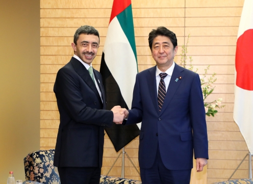 On April 3, 2018, Prime Minister Shinzo Abe received a courtesy call from H.H. Sheikh Abdullah bin Zayed Al Nahyan, Minister of Foreign Affairs and International Cooperation of the United Arab Emirates, at the Prime Minister’s Office.