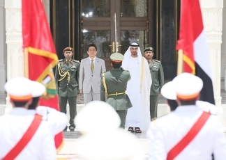 On April 30 (local time), Prime Minister Abe first attended the Japan-UAE Business Forum, and then attended a guard of honor ceremony and welcome ceremony at the Presidential Palace. Following this, the members of the delegation accompanying the Prime Minister expressed their respects, and a commemorative photograph session with the economic mission was held.