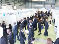 Victor Olisemedua Ifeajika of Nigeria, who specializes in engineering at Graduate School of Engineering, Nagaoka University of Technology (in Niigata prefecture), visited the booths of about 10 companies, including food processing companies and trading companies, in an effort to participate in an internship this summer.