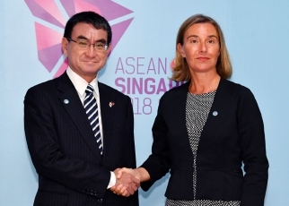 (1) Minister Kono and High Representative Mogherini welcomed the signing of the Japan-EU Economic Partnership Agreement (EPA) and the Strategic Partnership Agreement (SPA) on the occasion of the Japan-EU Summit on July 17, and agreed that Japan and the EU will continue to cooperate for early entry into force of both agreements. In addition, they agreed on the importance of further strengthening the Japan-EU relationship building on both agreements, and in particular, promote concrete dialogue and cooperation in a wide range of areas based on the SPA.