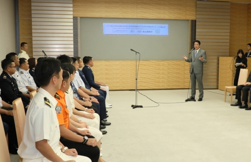 I hope that you will protect a free and open maritime order based on the rule of law, and based on this common principle, protect the ocean and peace as well as safeguard the further development and prosperity of your respective maritime nations, by making full use of the knowledge you have acquired from the Maritime Safety and Security Policy Program, and thoroughly fulfilling your roles and responsibilities by taking advantage of the network of friends you have cultivated during this one year, or shall I say friendship of the ocean.