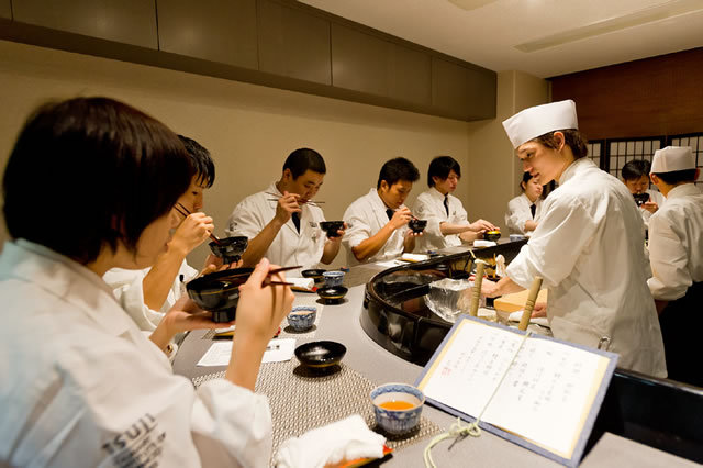 Shizuo Tsuji's 1980 cookbook Japanese Cooking: A Simple Art demystifyed Japan's culinary traditions. The Tsuji Culinary Institute (TCI), which he founded in Osaka, trains chefs from around the world. Instructors sharpen their skills at Brushstroke, a New york restaurant opened by the TCI group and chef David Bouley.
