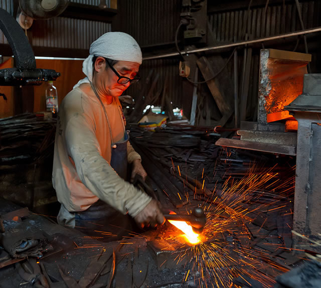 Yoshikazu Tanaka (above), a 63-year-old master knife craftsman, has been hammering blades by hand for more than 40 years. His workshop is in Sakai, a city in Osaka prefecture where knife-making has been a tradition for centuries; the area's artisans are now renowned globally for their super-sharp knives for the kitchen.