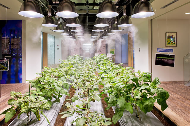 Since 2010, the company has used its Tokyo headquarters as a showcase for urban farming. In the lobby, pumpkins dangle from trellises and mist machines spray a patch of aubergines, while lettuce grows in a room full of hydroponic (soilless) trays. “Young city dwellers don't feel close to what farmers do”, says Sayaka Itami, who heads the company's urban-farm division. “We hope to raise awareness in the city about farming and the goal is to create farm-sector jobs”.