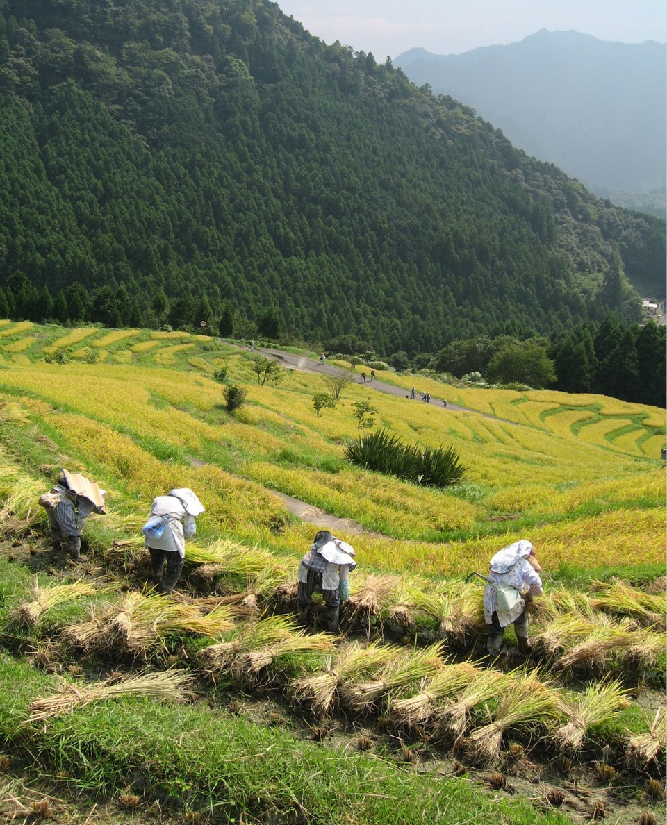 With advances in agriculture, this style appears outdated, and is steadily disappearing. Those places where it remains, though, retain a distinctive beauty in their landscape, a sense of tradition, and a slower pace of life. While no one disputes that Japanese rice grown in the more “modern” way, on flat plains, is delicious, anyone would agree that rice grown on terraced paddies like these, harvested by hand, and dried naturally in the sun, is truly something special.
