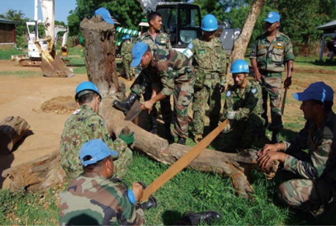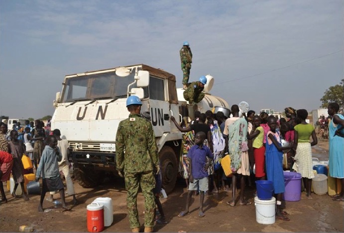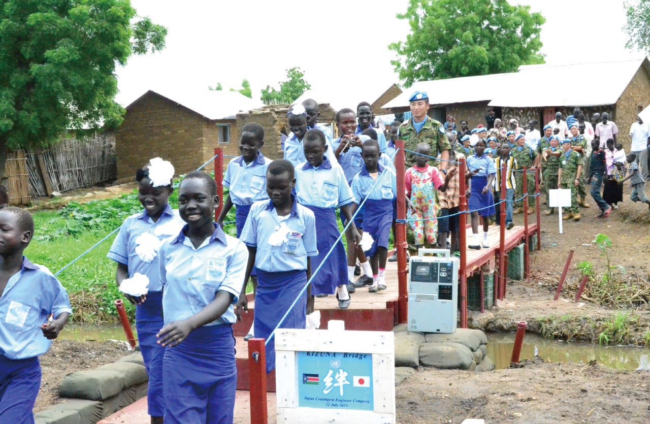 At the time of the independence of South Sudan, the United Nations Mission in South Sudan (UNMISS) was established by UN Security Council Resolution No. 1996 in 2011, with the aim of fostering state building. After receiving requests from the UN, Japan has dispatched around 400 personnel to South Sudan. Up to now, the SDF has been engaging in engineering activities in the capital, Juba, and its surrounding areas while coordinating with international organizations, troops from other countries, NGOs, and the Ministry of Foreign Affairs. Since the deterioration of the security situation in December 2013, the SDF is currently conducting activities to support Internally Displaced Persons (IDPs) at the UN facilities located in Juba, South Sudan. The engineering unit has been engaging in various activities for locals including the construction of IDP camps and water supply.