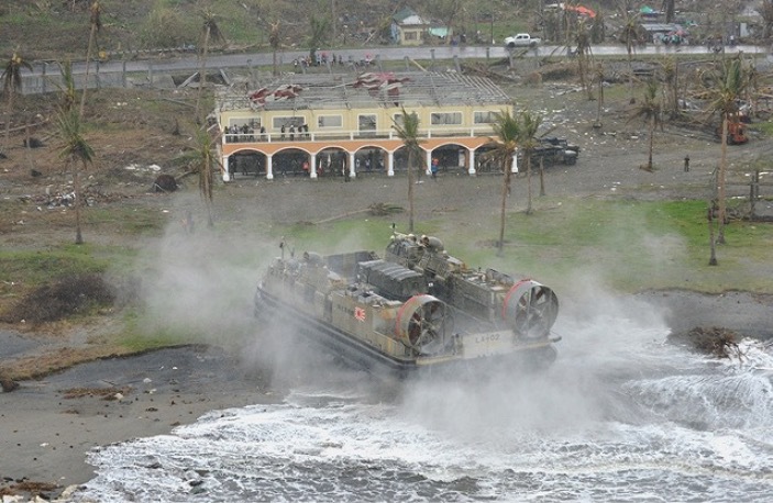 Landing Craft Air Cushion (LCAC) lands in Tacloban City, Leyte Island to carry out epidemic prevention activities.