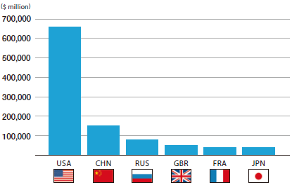 This graph shows that the defense expenditures of major countries in Purchasing Power Parity terms. In FY2011, China’s defense spending was approx. 3.2 times as large as Japan’s; in FY2014 China announced its defense budget increased by 12.2%, and has grown approx. 40-fold over the past 26 years. Source: Defense of Japan 2013 and other government documents.