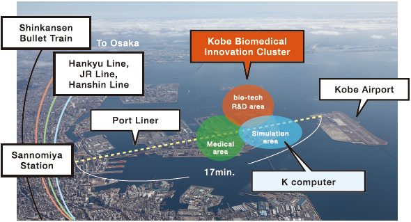 The Kobe Biomedical Innovation Cluster (KBIC), a medical research park that was founded in 1998 as part of a national project to improve the health and welfare of Japanese citizens, was designated by the Japanese government as a National Strategic Special Zone in April 2014. The KBIC currently hosts more than 270 research facilities, some of which are led by Nobel laureates, and related companies. Within the KBIC, the Institute of Biomedical Research and Innovation (IBRI), the Riken research institute, and other top-class research organizations have carried out projects in close cooperation with companies in and around Kobe. This collaboration has resulted in advances in such cutting-edge arenas as regenerative medicine and video-assisted procedures, as well as the development of more effective medicines. Also located in the KBIC is Riken’s K computer. Boasting one of the fastest processing speeds in the world, this supercomputer can be used to advance research in the life sciences.