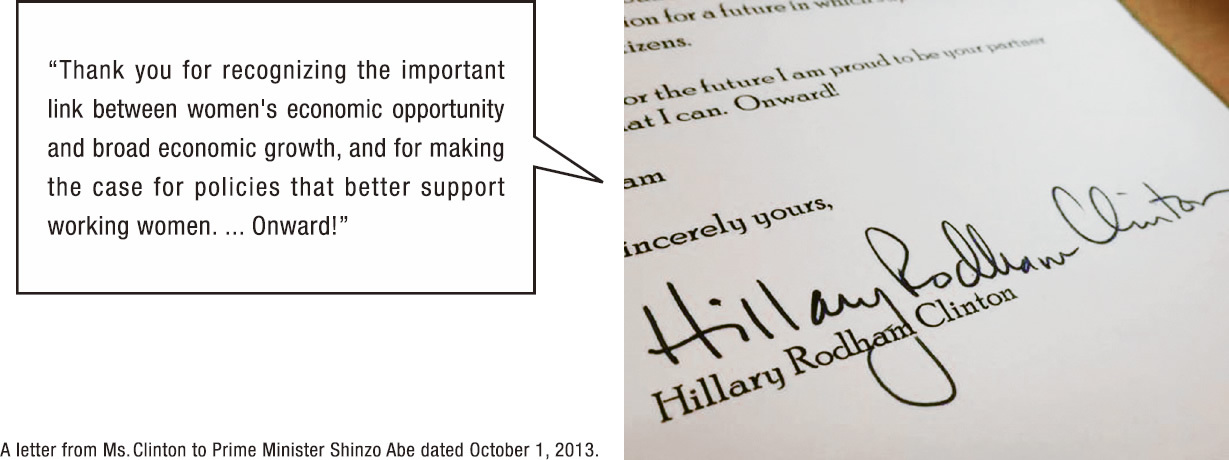 Ms. Christine Lagarde, managing director of the International Monetary Fund, has said that ifJapan were to raise its female labor participation rate to that of most G7 countries (excluding Italy), GDP per capita would rise by 4%. She has also stated that raising the rate further to equal that of Northern Europe would increase GDP per capita by 8%. In a letter to Prime Minister Abe, Ms. Hillary Clinton wrote that if women had the same labor participation rate as men in Japan, GDP would grow by 16%.