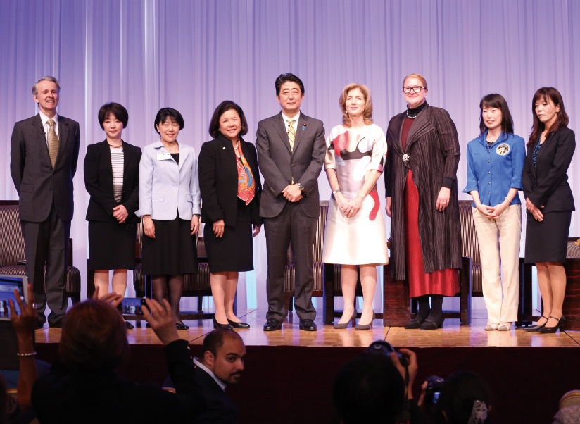 Abe stands with U.S. Ambassador to Japan Caroline Kennedy and other participants at the summit