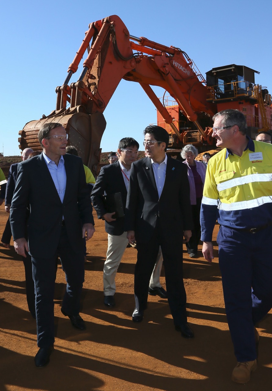 With Australian Prime Minister, Tony Abbott, visiting the West Angelas mine in Western Australia. The two leaders continued their friendly dialogue aboard the Australian Prime Minister’s plane. (July 2014)