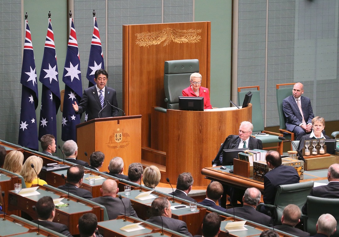 Prime minister Abe was afforded a rare opportunity to address the Australian Parliament. (July 2014)