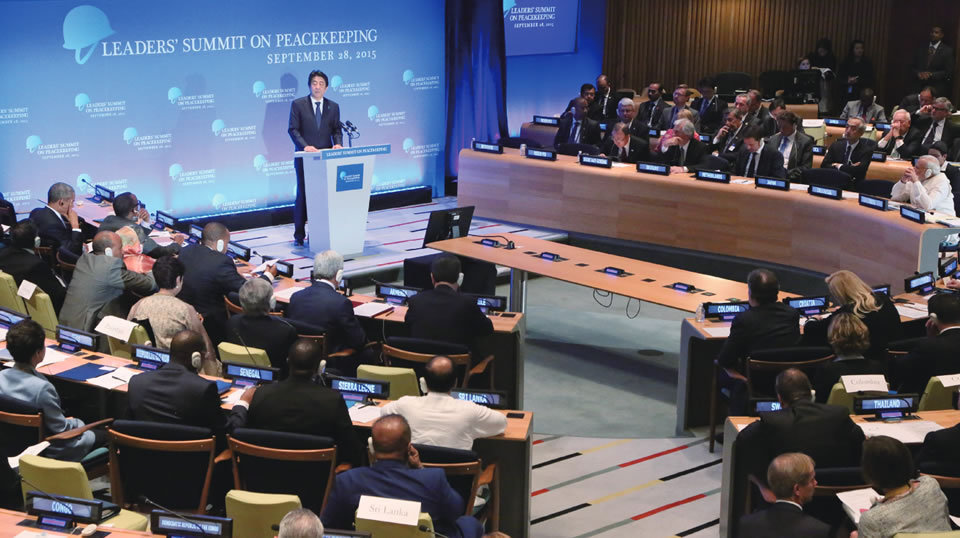 Prime Minister Shinzo Abe attended the 2nd Leaders’ Summit on Peacekeeping while visiting New York for the 70th Session of the United Nations General Assembly (September 2015).