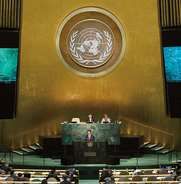 Prime Minister Abe attended the 70th Session of the United Nations General Assembly and participated in various events during his stay in New York (September 2015).