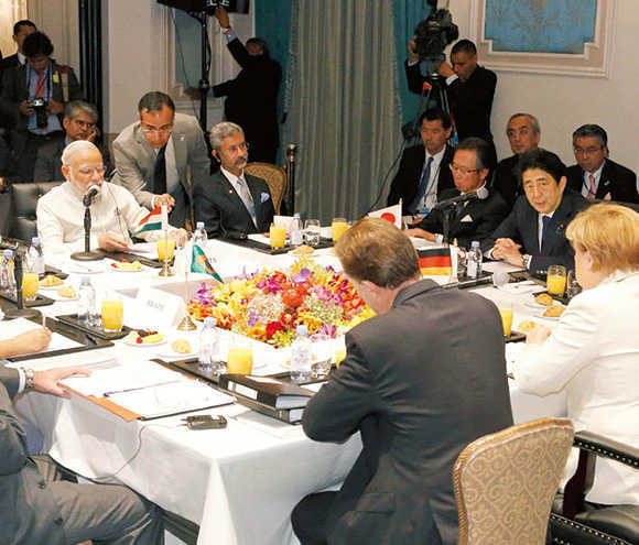 Prime Minister Abe, while in New York for the U.N. General Assembly, met separately with a number of participating leaders (September 2015).