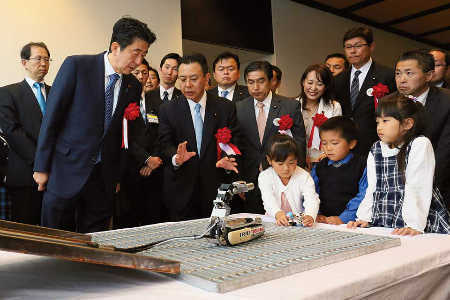 Viewing a robot demonstration at a remote technology development center in Fukushima Prefecture (October 2015).
