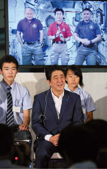 Talking with Japanese astronaut Kimiya Yui, who is on a mission aboard the Japanese Experiment Module, Kibo, of the International Space Station (ISS) (August 2015).