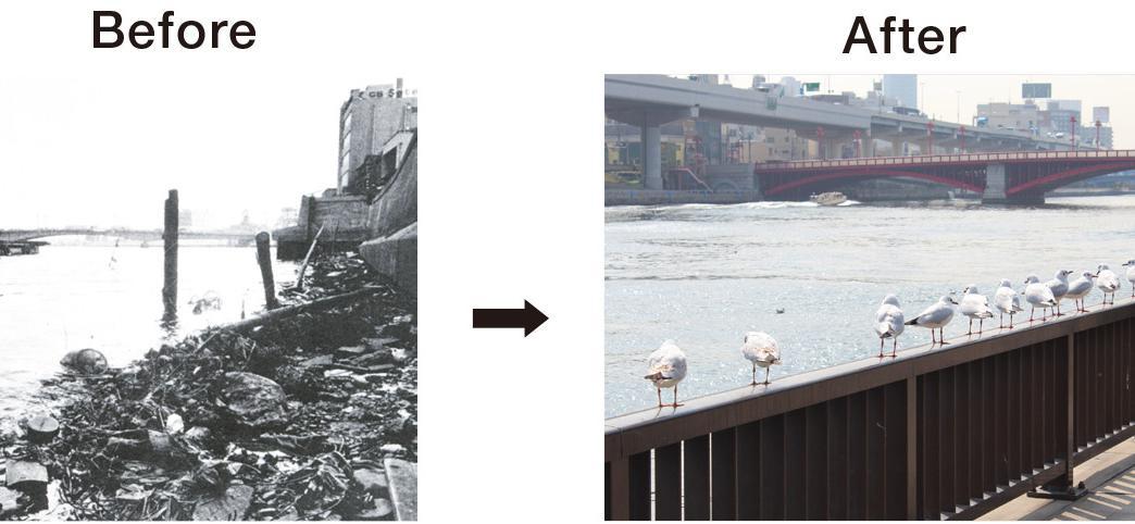 Formerly a target of despair as a “river of death,” the Sumida River is once again a popular waterway full of life. The half century of work on its revival has been a pioneering example of river improvement in Asia. How about coming to see for yourself?