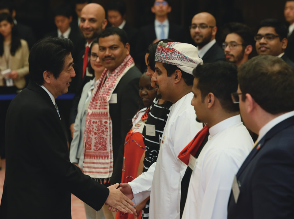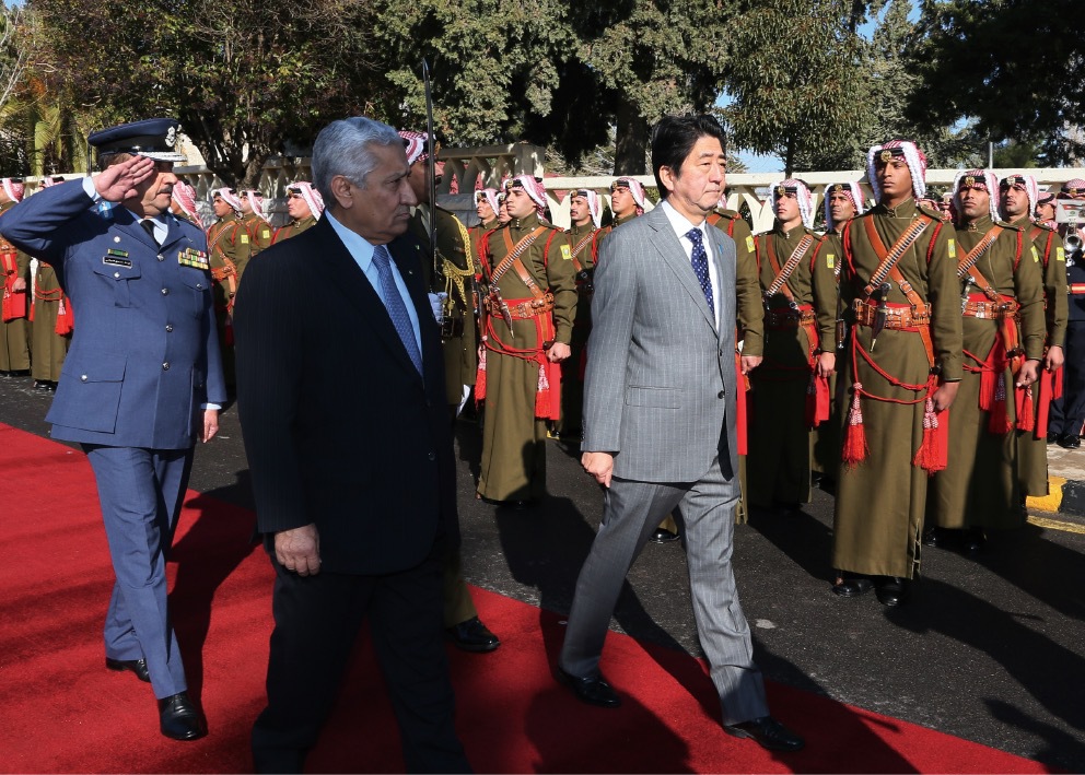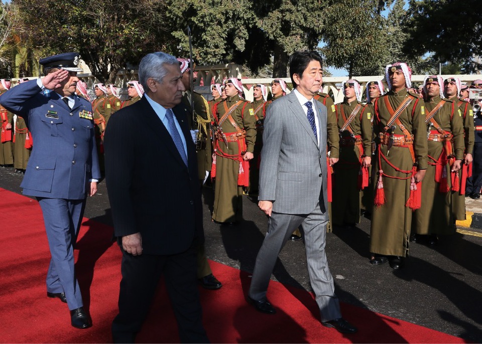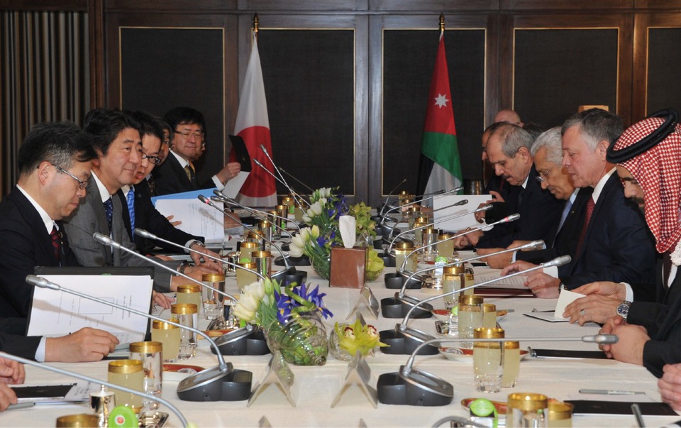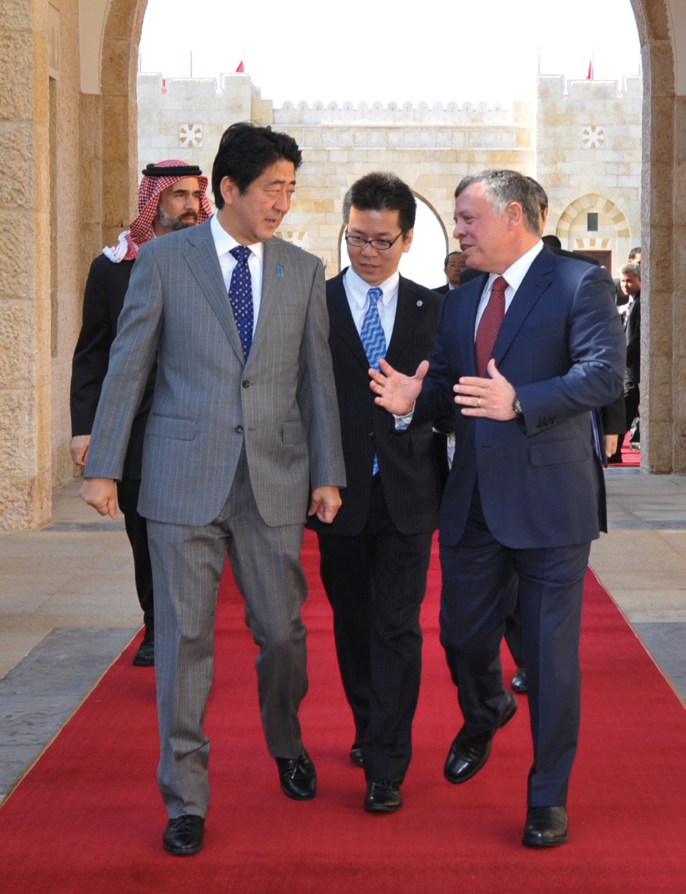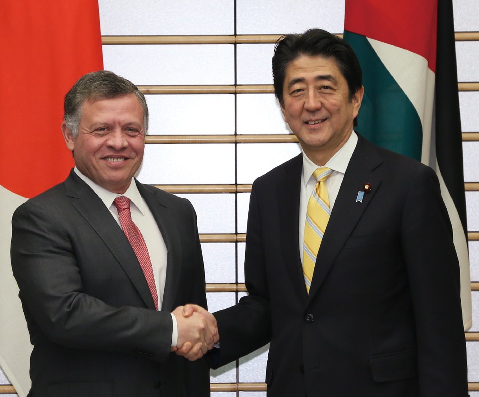 Prime Minister Abe at a bilateral meeting with His Majesty King Abdullah II of Jordan in Japan (November 2014).