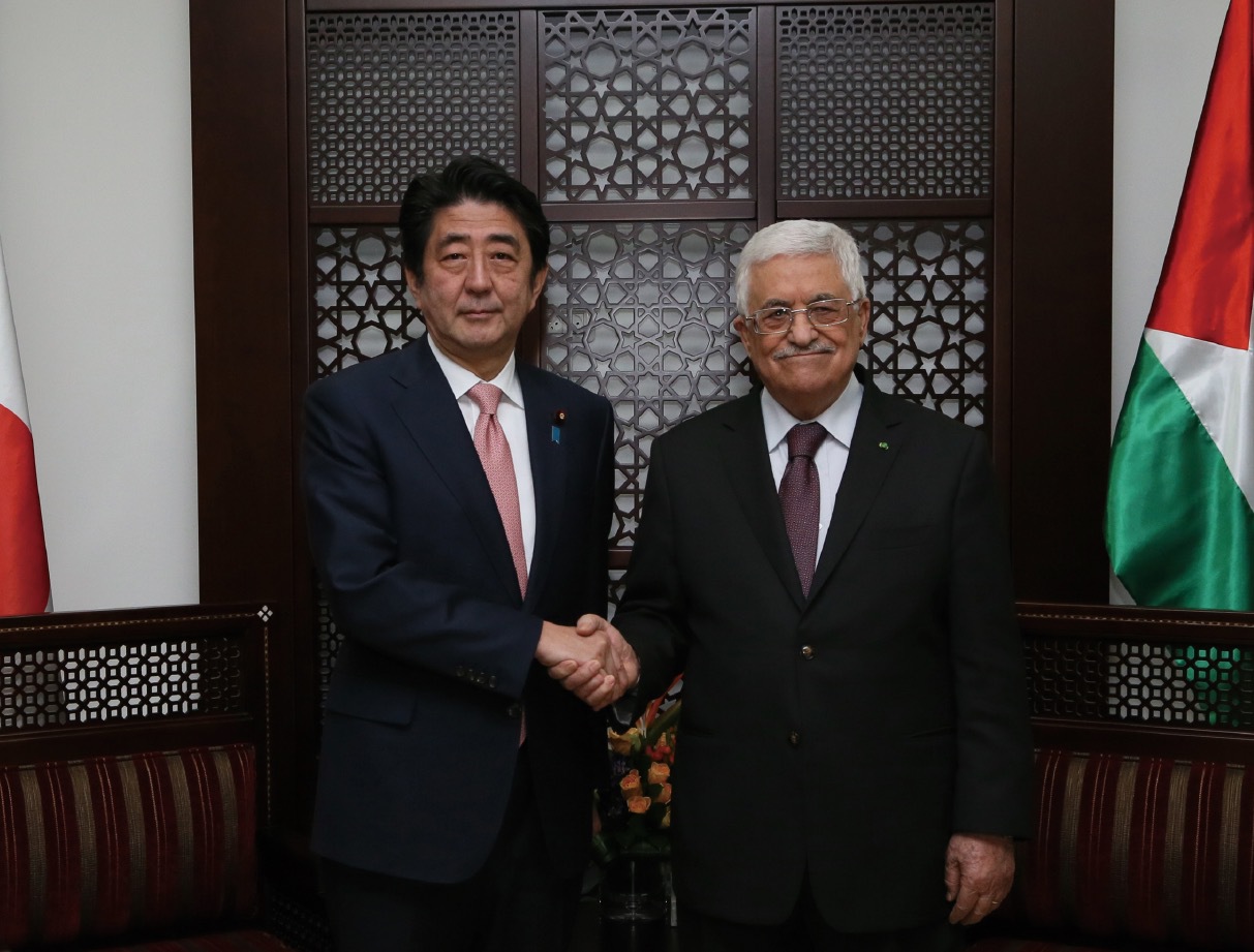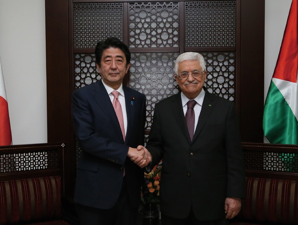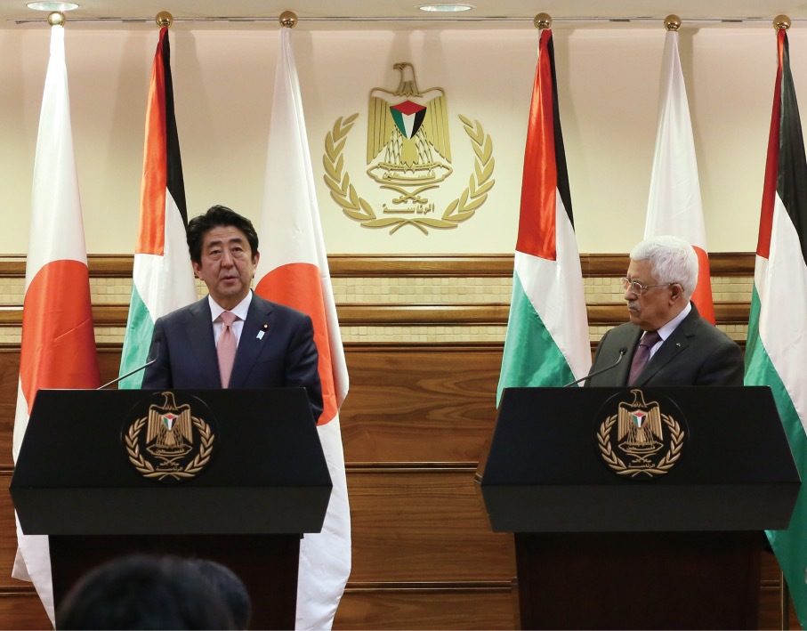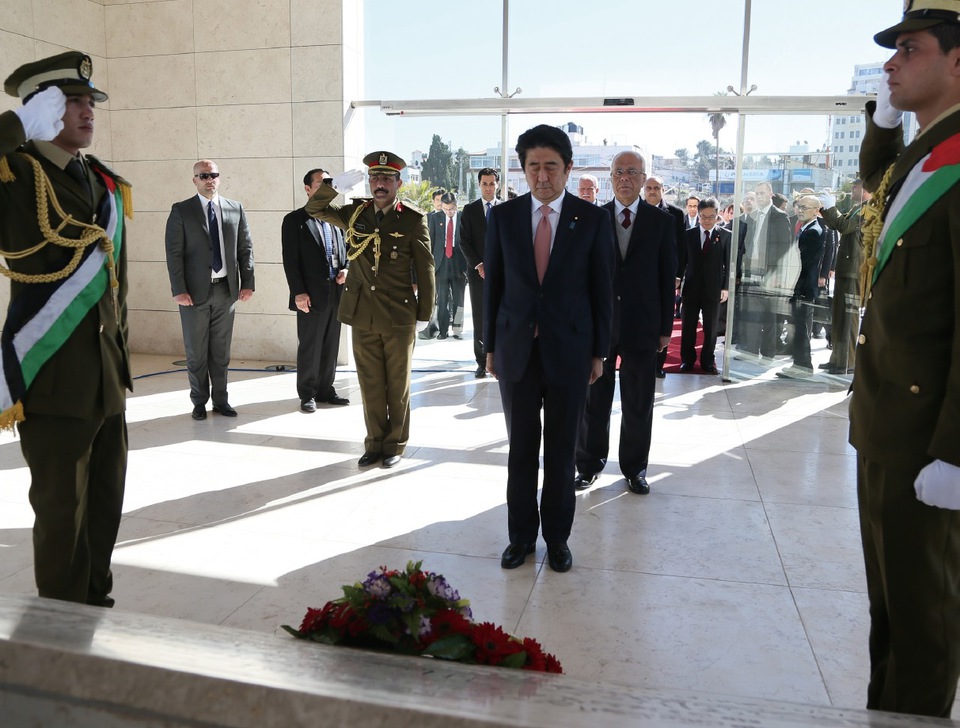 Prime Minister Abe visiting the mausoleum of the late Yasser Arafat, chairman of the Palestine Liberation Organization, where he offered flowers at his grave (January 2015).