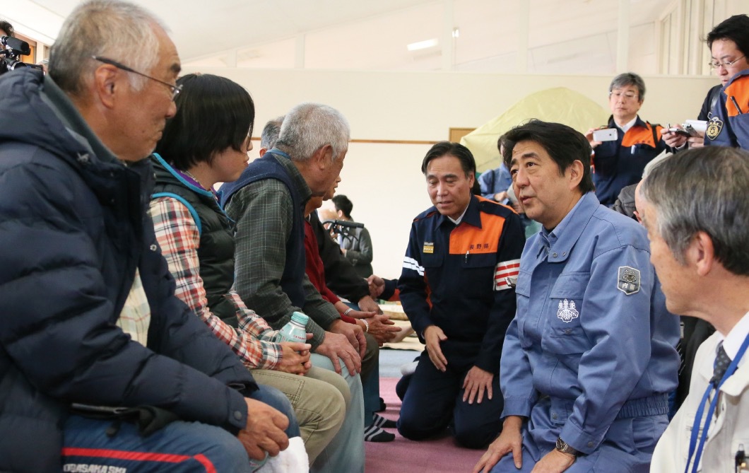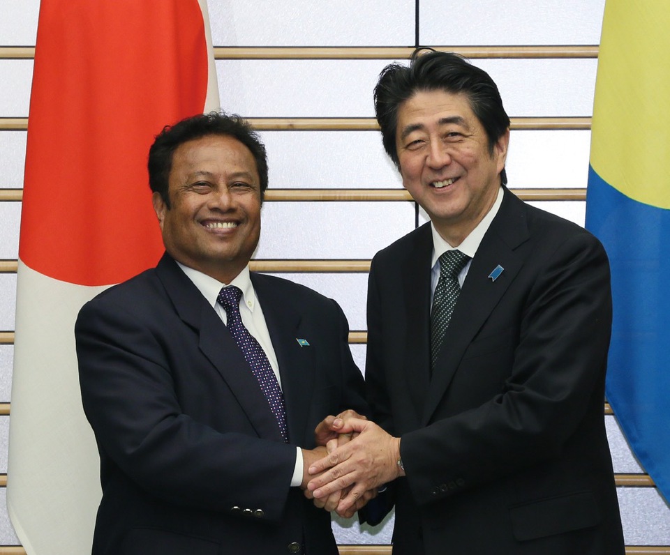 Prime Minister Abe at a bilateral meeting with Palauan President Tommy E. Remengesau, Jr. in Japan (December 2014).