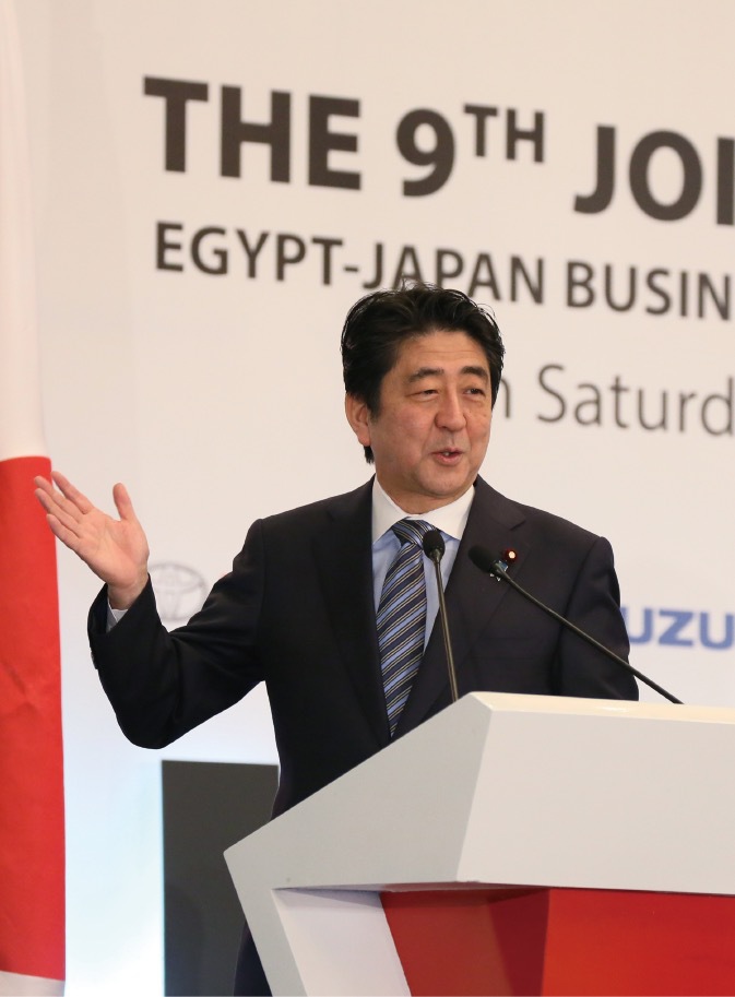 The entirety of that has already been put into execution. A stable Middle East that is vibrant. A stable Middle East backed by the spirit of Khair Al-Umuri Ausatoha. A stable Middle East where people can live without anxiety. Japan’s assistance always aims at no less than restoring stability in the region. Let us just imagine how much potential you could unleash in Egypt, in the region, once your society has restored stability and again ensured the path towards growth. Japan wishes to be a never-failing running mate to you as you work towards that future. The Government of Japan will newly carry out assistance of 2.5 billion U.S. dollars in non-military fields including humanitarian assistance and infrastructure development, intended for the entire region.