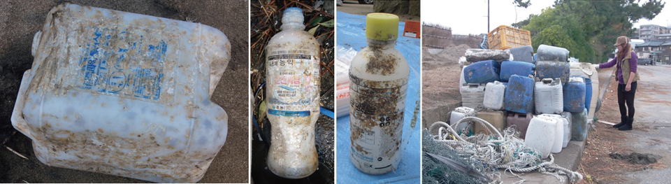 She explained that trash typically consists of things like fishing gear, plastic bottles, and polyethylene tanks. And sometimes they find medical waste such as syringes. More than half of the debris comes from outside of Japan, and most of that has Korean writing on it. What is more surprising is that sometimes several items of the same thing wash ashore—leading one to suspect that they were disposed of systematically and intentionally. She also said that medical waste and polyethylene tanks contain residual hazardous substances, such as caustic soda, and are extremely dangerous; because of this they have to take special care to keep children away during their clean up activities.