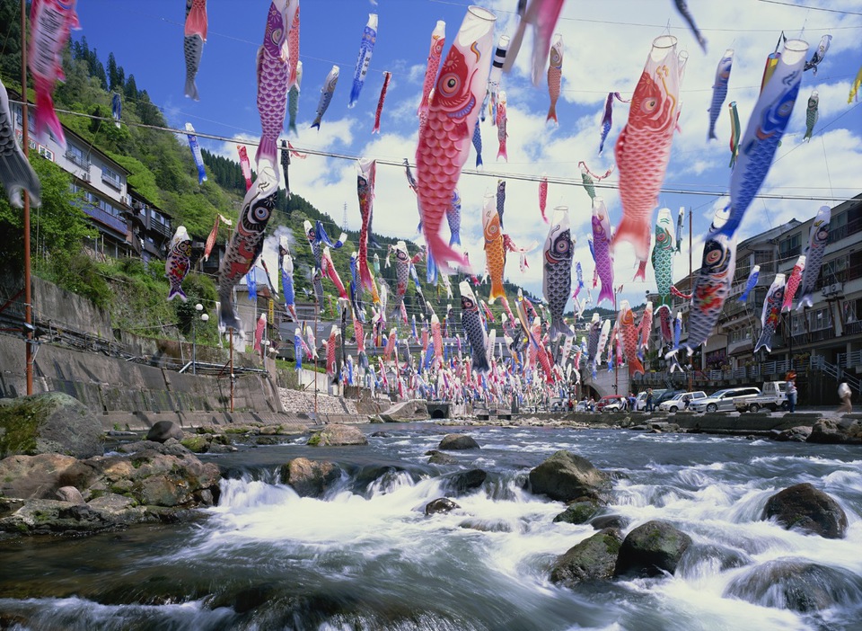Carp Streamers (koi nobori ): Tsuetate Onsen Hot Springs, Kumamoto Prefecture