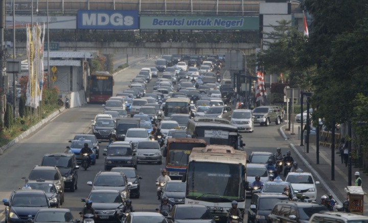 A Jakarta street earmarked for the laying of new underground sewerage pipes. Consistently heavy traffic means the road cannot be closed for the necessary construction work to take place.