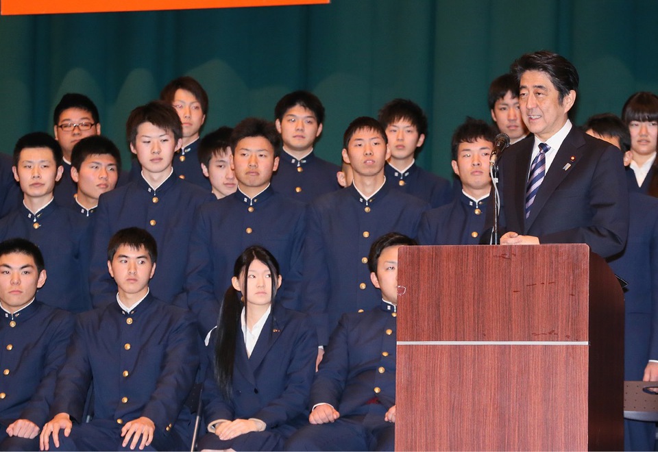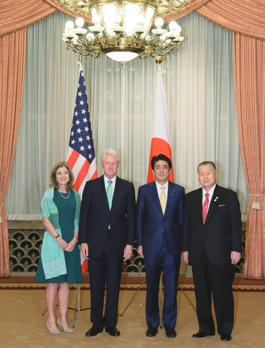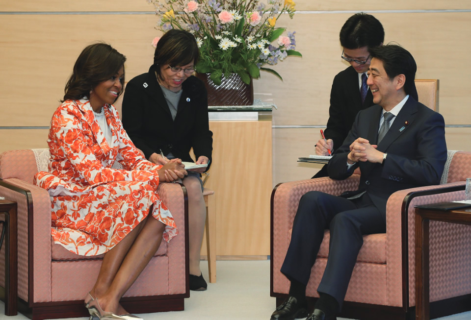 Prime Minister Shinzo Abe receiving a courtesy call from First Lady of the United States, Michelle Obama, at the Prime Minister’s Office (March 2015).