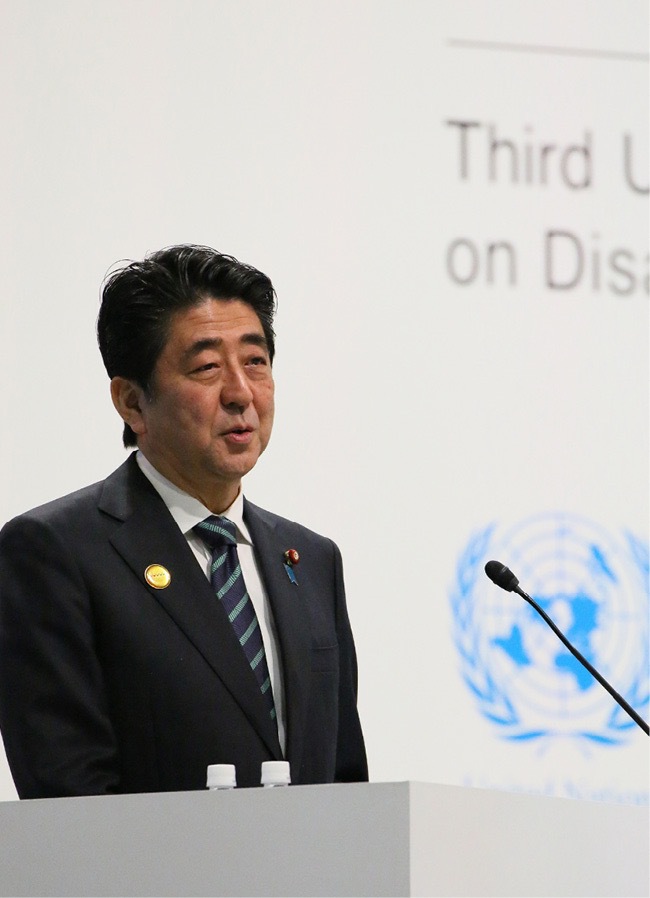 Prime Minister Abe attended the Third UN World Conference on Disaster Risk Reduction held in Sendai, Japan. During the conference he engaged in talks with world leaders and other notable figures (March 2015).