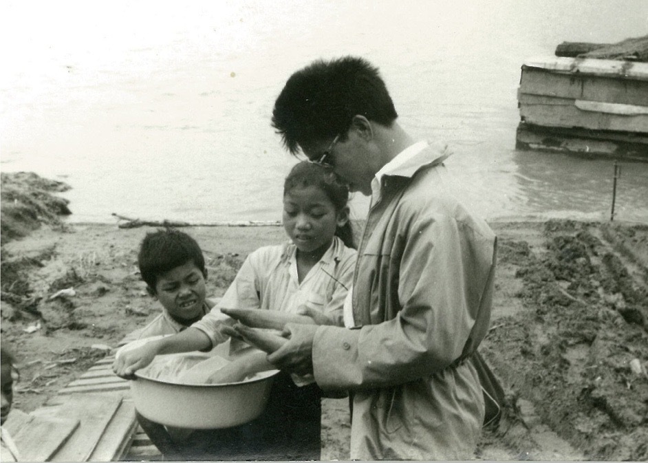 Atsushi Munakata repairs a well together with local residents. For two years he taught residents how to fix wells so that they could continue to have a supply of safe water even after he left.