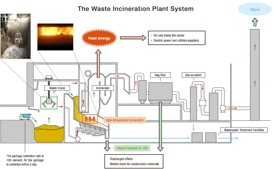 There are nineteen waste incineration plants in the central part of Tokyo. For many people, waste incineration plants have a negative image, associated with dirtiness and air pollution. But with the latest technology, waste disposal methods are actually efficient and environmentally friendly.