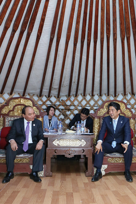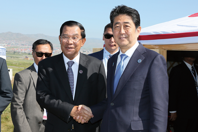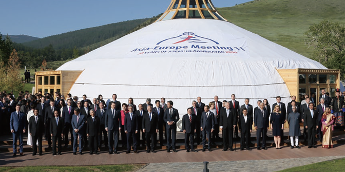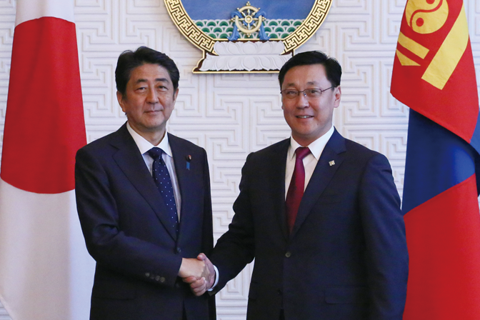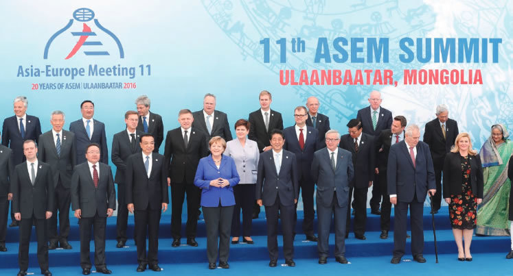 Prime Minister Abe visited Ulaanbaatar in Mongolia, where he attended the Asia- Europe Meeting (ASEM) and held meetings with leaders of other countries (July 2016).