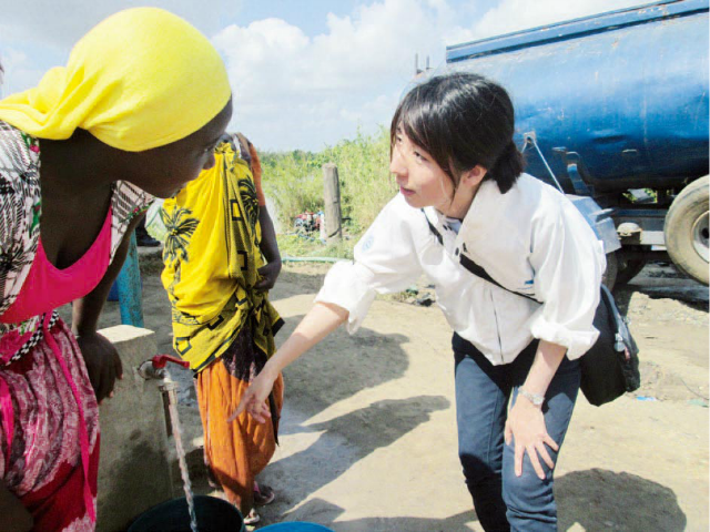 With just a spoonful of white powder stirred into a beaker of brown, cloudy water, the dirt visibly clumps together and the water starts to clear. “Be it in Bangladesh or Tanzania, even if there’s a language barrier, when I conduct this demonstration, people ooh and aah, and faces break into smiles. I’ve even heard the startled response, ‘It’s magic powder!’” So relates Kanako Mizuno of the Poly-Glu Group.