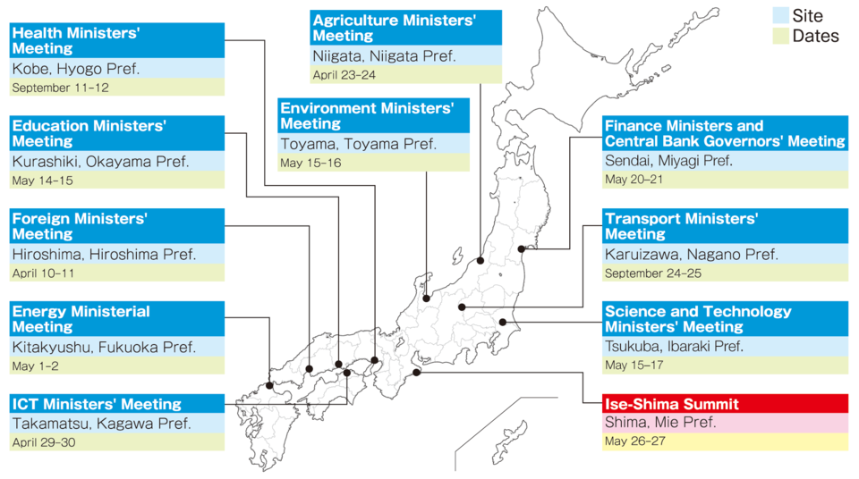 G7 ministerial meetings are to be held in 10 cities around Japan from April through September. They are all among Japan’s leading regional cities and have been chosen as appropriate sites for discussions on the topics of each of the meetings. All of these cities are now energetically preparing to host the meetings.