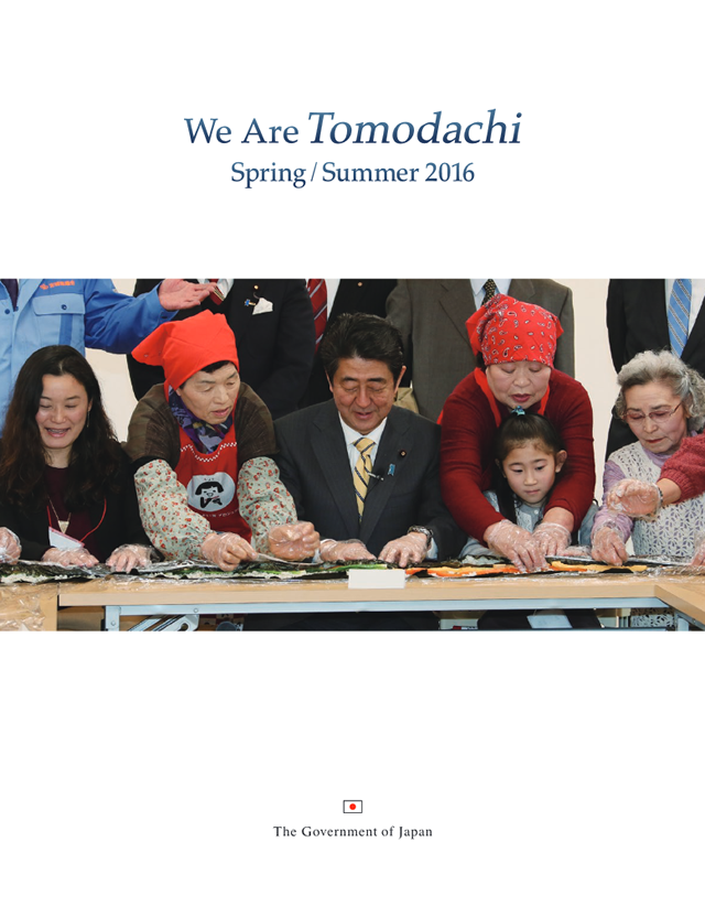 Previous Issues 2020 2019 2018 2017 2016 2015 2014 2013 Tomodachi 2016 vol.21Japan and Russia Edition 2016 Japan’s Economic Ties with Russia vol.20Winter 2016 Japan and Latin America vol.19Japan in Africa Edition 2016 Japan Contributing to Africa’s Tomorrow Vol.18Autumn 2016 Japan Contributing to Africa’s Tomorrow Vol.17Summer 2016 Helping to Build Asia’s Infrastructure Vol.16G7 Japan 2016 Messages from Tohoku Vol.15Spring / Summer 2016 The Promising Potential of Japan’s Industries Vol.14Spring 2016 Japanese Support for Safety Frameworks Worldwide Vol.13New Year 2016