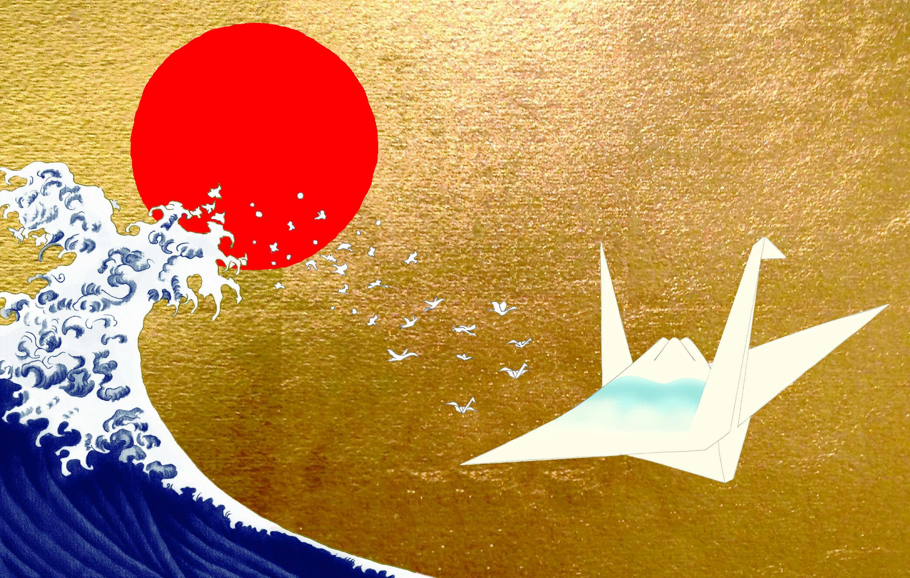 Crane Fuji, a print from MacMillan’s series Thirty-Six New Views of Mount Fuji, celebrates Mount Fuji becoming a World Heritage Site and the dissemination of Japanese culture around the world. The print series was inspired by the ThirtySix Views of Mount Fuji of the ukiyo-e artist Katsushika Hokusai (1760–1849). © 2012 Peter MacMillan.